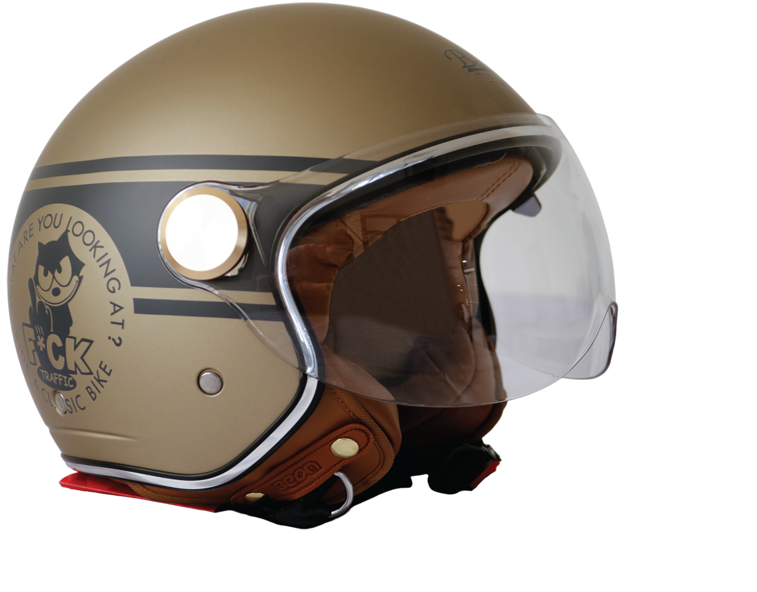 Le Casque Beon B-120 présente un design élégant avec sa couleur Matt Gold/Grey Black, offrant une combinaison attrayante de tons dorés et de noir. Il ajoute une touche de sophistication à votre look tout en se fondant parfaitement dans l’environnement urbain.